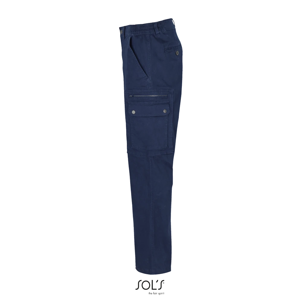 Κλείσιμο με φερμουάρ και μεταλλικό κουμπί-Ελαστική μέση με ενισχυμένα θηλύκια για ζώνη-2 ιταλικές τσέπες στο πλάι-1 εξωτερική τσέπη με φερμουάρ στο αριστερό μπατζάκι-2 εξωτερικές πλαϊνές τσέπες στα μπατζάκια με καπάκι και κουμπιά-2 πίσω τσέπες με κουμπιά-1 τσέπη εισιτηρίου-Μοντέρνα γραμμή