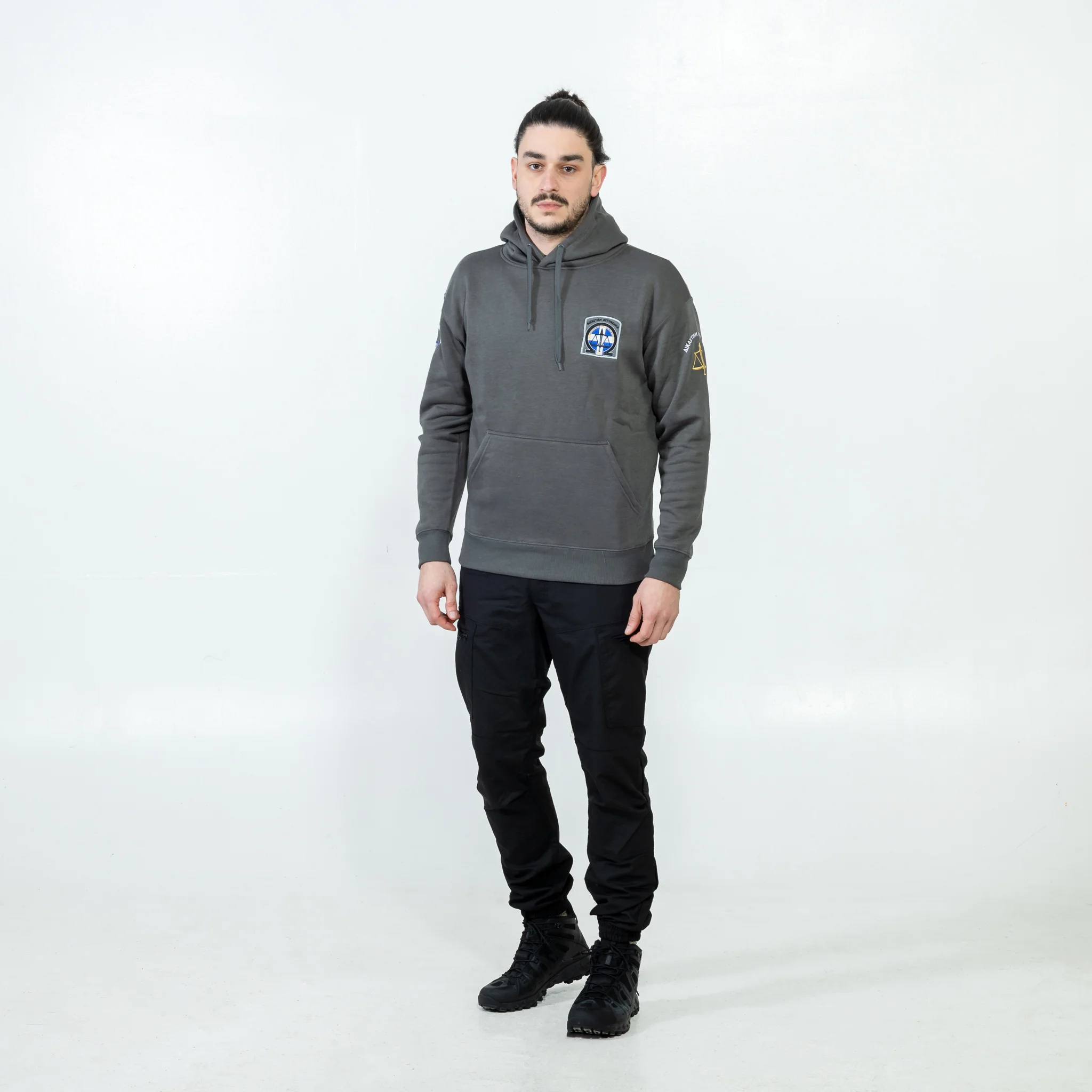 Λεπτομέρειες: Τσέπη καγκουρό - Επενδεδυμένη κουκούλα με κορδόνι στον ίδιο τόνο και μεταλλικές τρύπες - Ελαστικό ριπ 2x2 στις μανσέτες και τη μέση