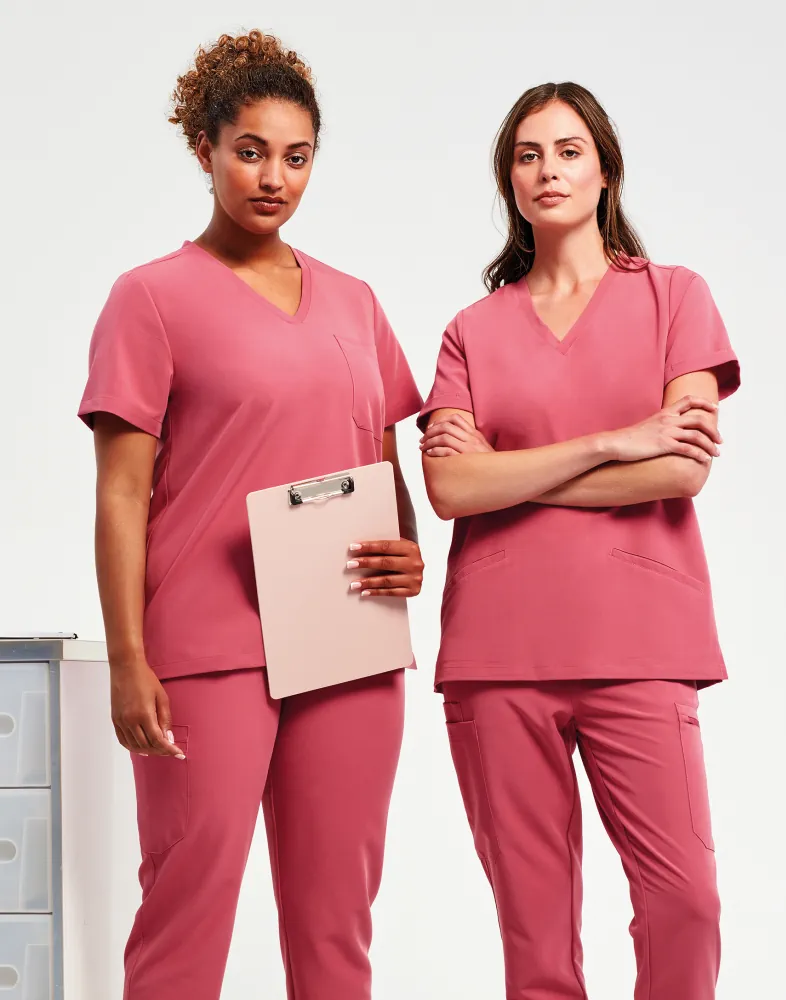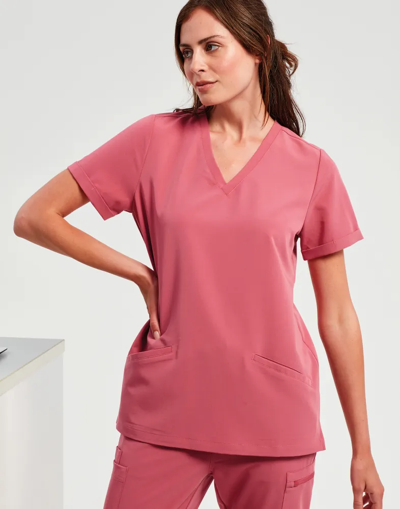 Λαιμόκοψη V - Κοντά μανίκια - 2 τσέπες μπροστά - Πένσες στην πλάτη - Διαπνέον - Ελαστικό - Ανθεκτικό - Μοντέρνα γραμμή