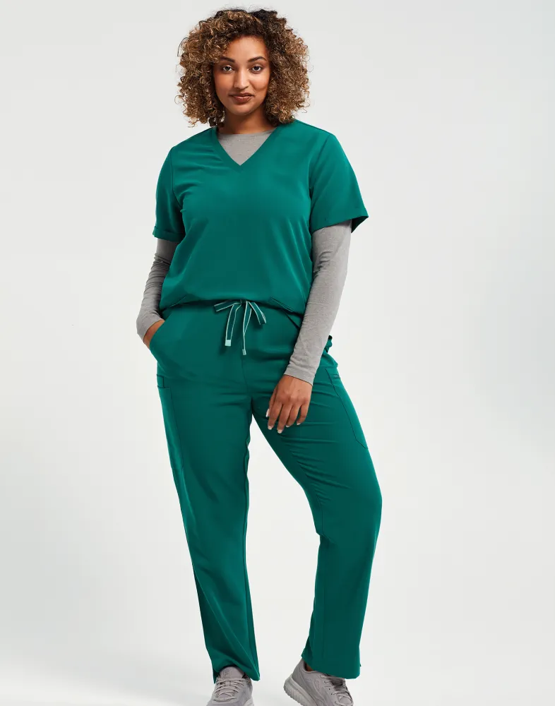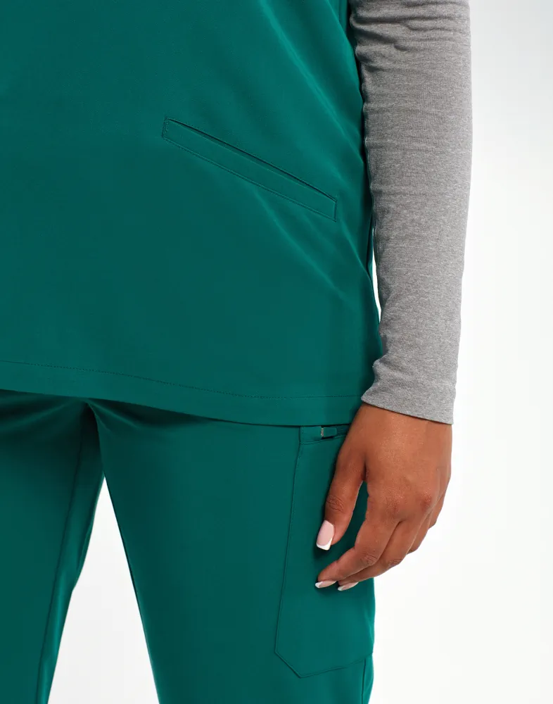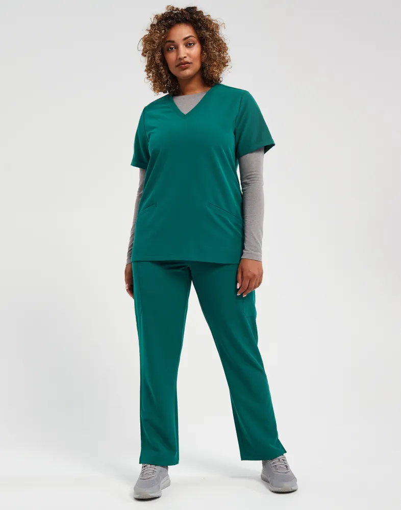 Λαιμόκοψη V - Κοντά μανίκια - 2 τσέπες μπροστά - Πένσες στην πλάτη - Διαπνέον - Ελαστικό - Ανθεκτικό - Μοντέρνα γραμμή