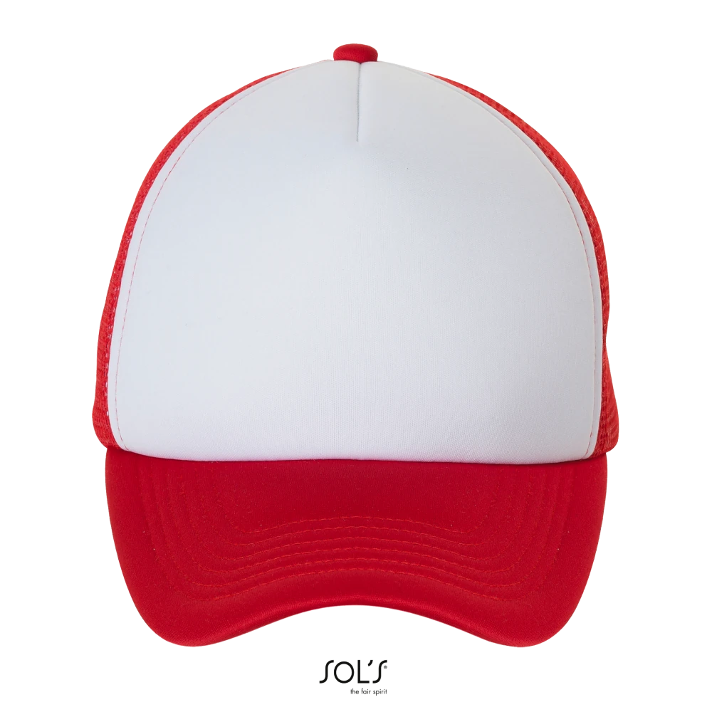 Δίχτυ στο πίσω μέρος - Σφουγγάρι 5mm στο μέτωπο και 3mm στην κορυφή - Κυρτό γείσο με 6 ραφές - Μαλακό μέτωπο - Ρυθμιζόμενο πλαστικό κλείσιμο - Ιδανικό για εξάχνωση (sublimation)