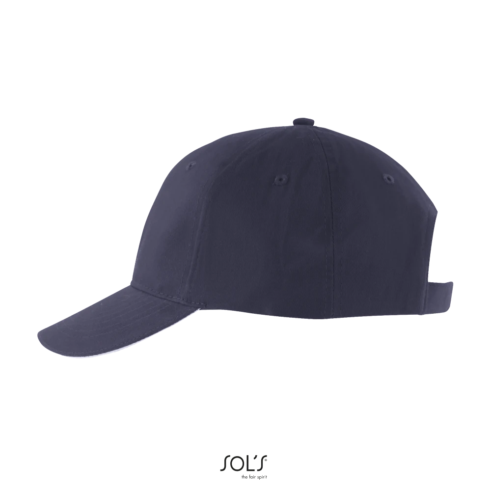 Κυρτό γείσο με 6 ραφές - Φυτίλι σε χρωματική αντίθεση - Σταθερό μέτωπο - 6 κεντημένες οπές εξαερισμού - Ρυθμιζόμενο κλείσιμο με αυτοκόλλητο