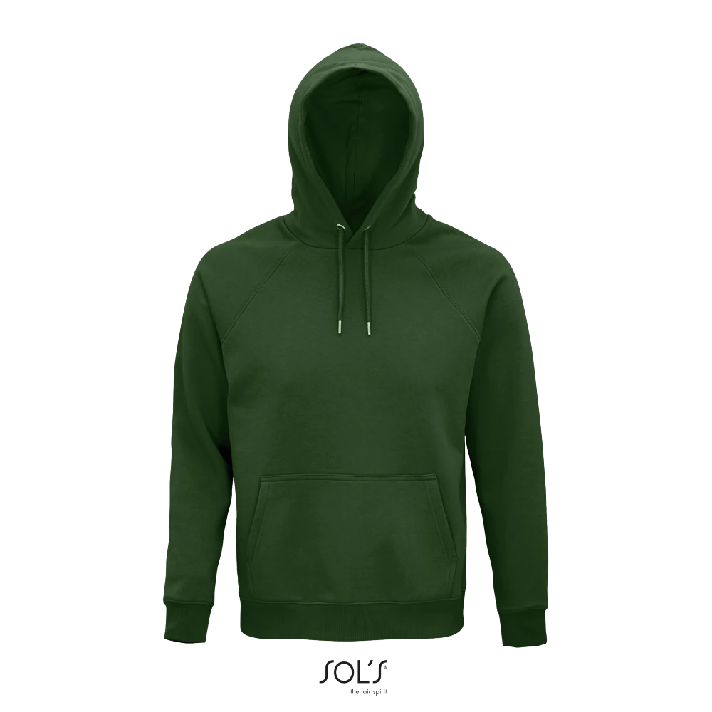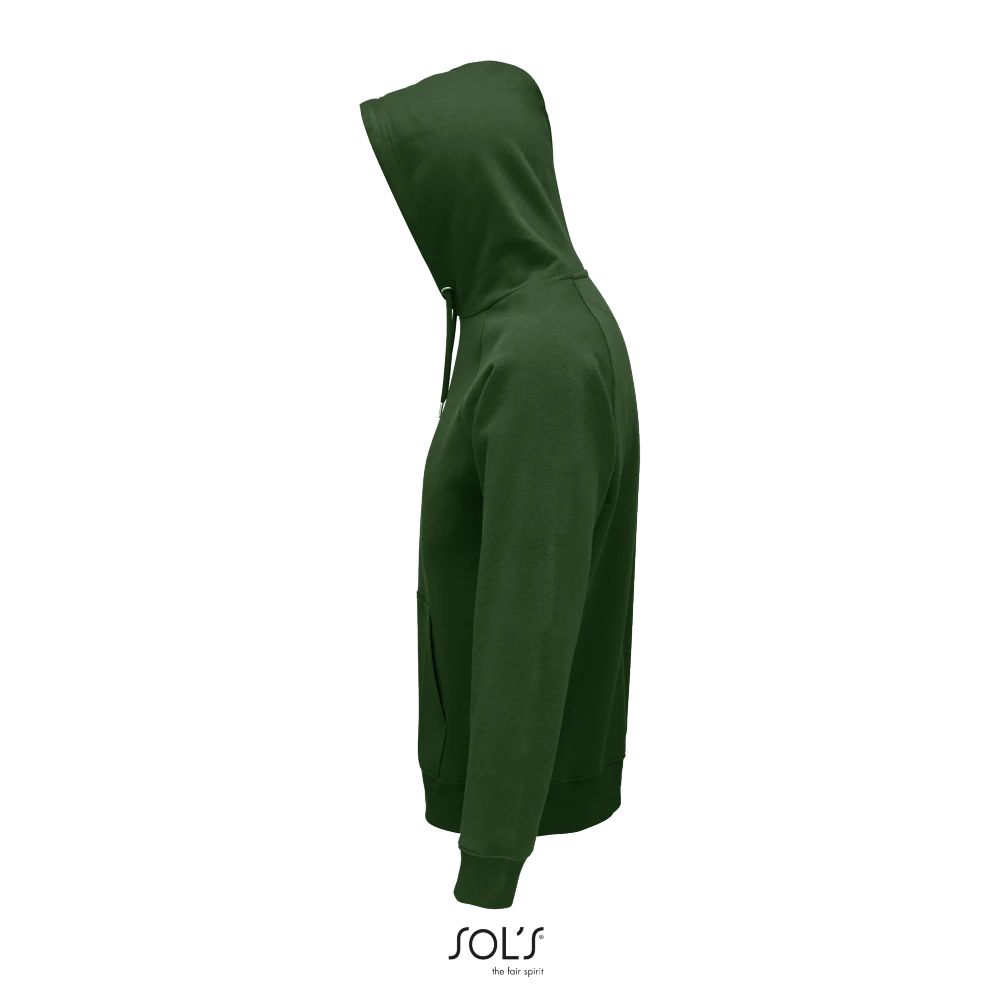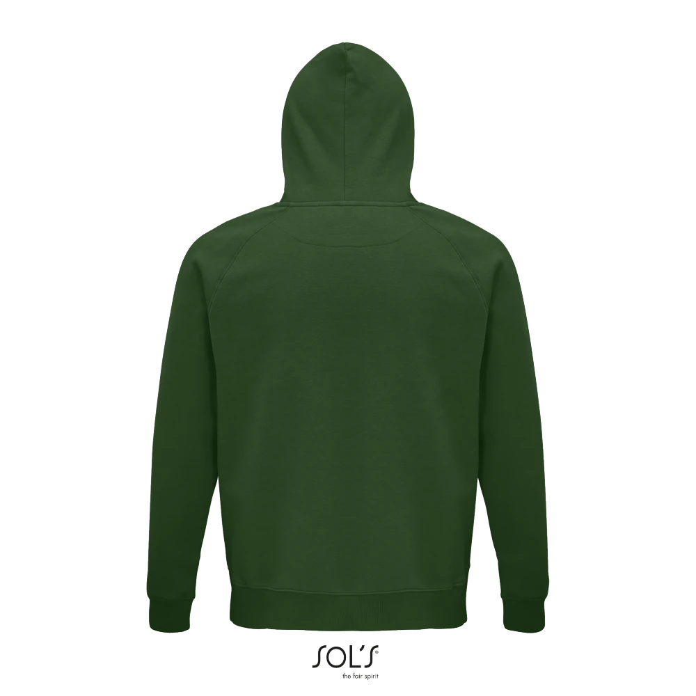 Τσέπη καγκουρό - Πλαϊνές ραφές - Ρεγκλάν μανίκια - Ελαστικό ριπ 2x2 στο γιακά, τις μανσέτες και τη μέση - Ενίσχυση (μισοφέγγαρο) για εκτύπωση στο εσωτερικό του γιακά - Φακαρόλα στο λαιμό - Επενδεδυμένη κουκούλα με κορδόνι στον ίδιο τόνο με μεταλλικές οπές και στοπ - "Wear & Care" SOLO GROUP program
