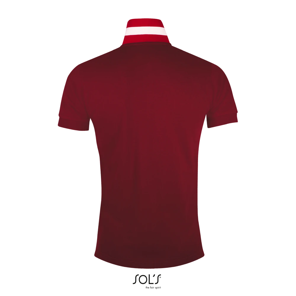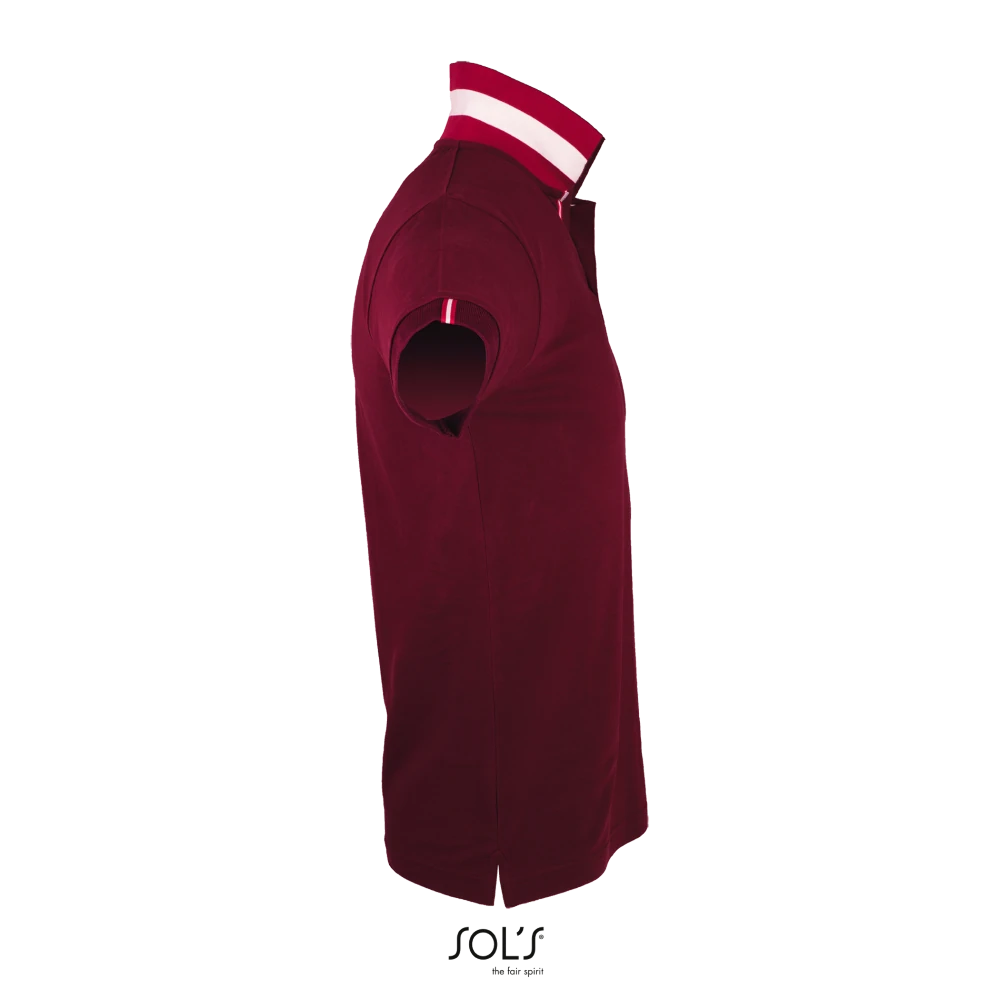 Κοντά μανίκια - Πλαϊνές ραφές - Ενισχυμένη πατιλέτα με 2 περλέ κουμπιά και επιπλέον κουμπί στην εσωτερική ραφή - Ριπ στον γιακά και τα μανίκια - Εφαρμοστή γραμμή - Φακαρόλα στο λαιμό - Ρίγες σε χρωματική αντίθεση κάτω από το γιακά, την πατιλέτα, τα μανίκια και τα πλαϊνά σκισίματα