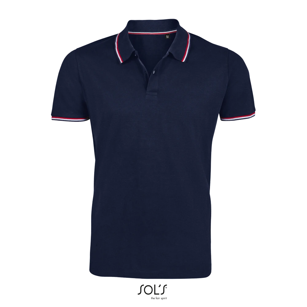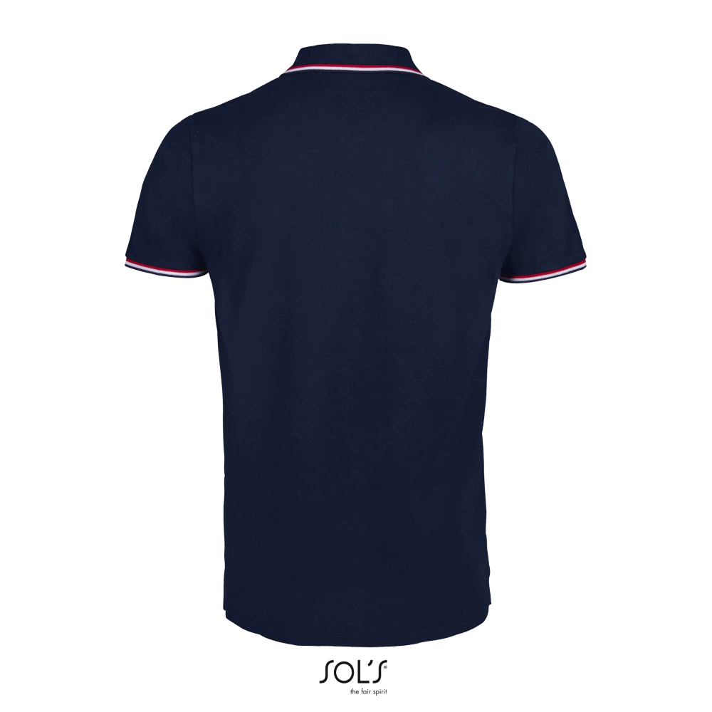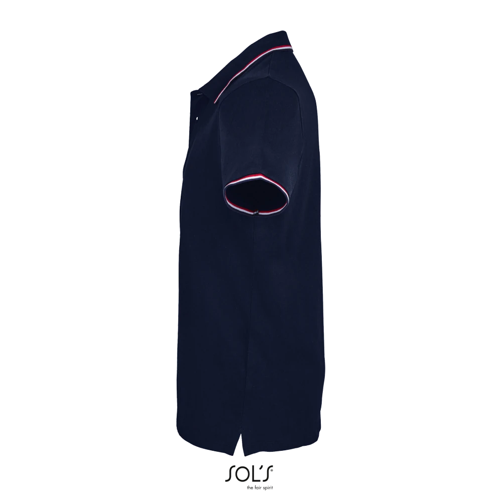 Κοντά μανίκια - Πλαϊνές ραφές - Πατιλέτα με 2 κουμπιά - Ρίγες σε χρωματική αντίθεση στο γιακά, τα μανίκια και τα πλαϊνά σκισίματα