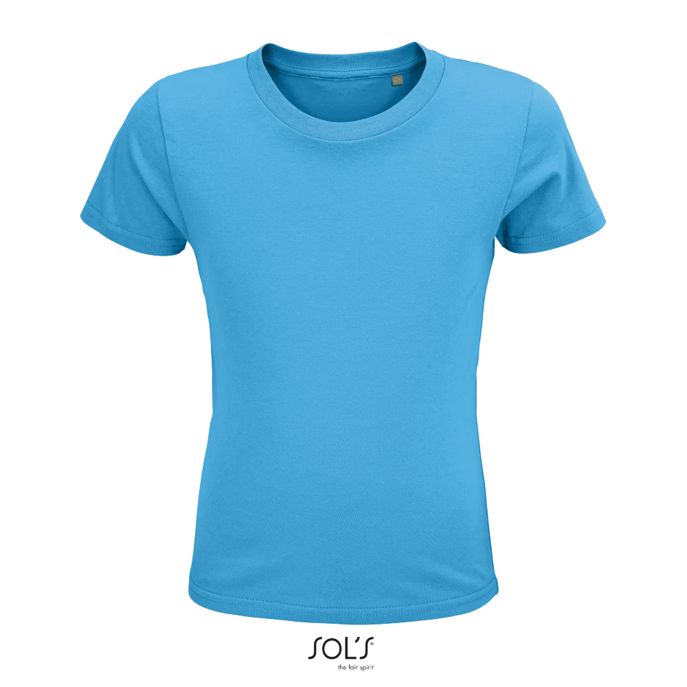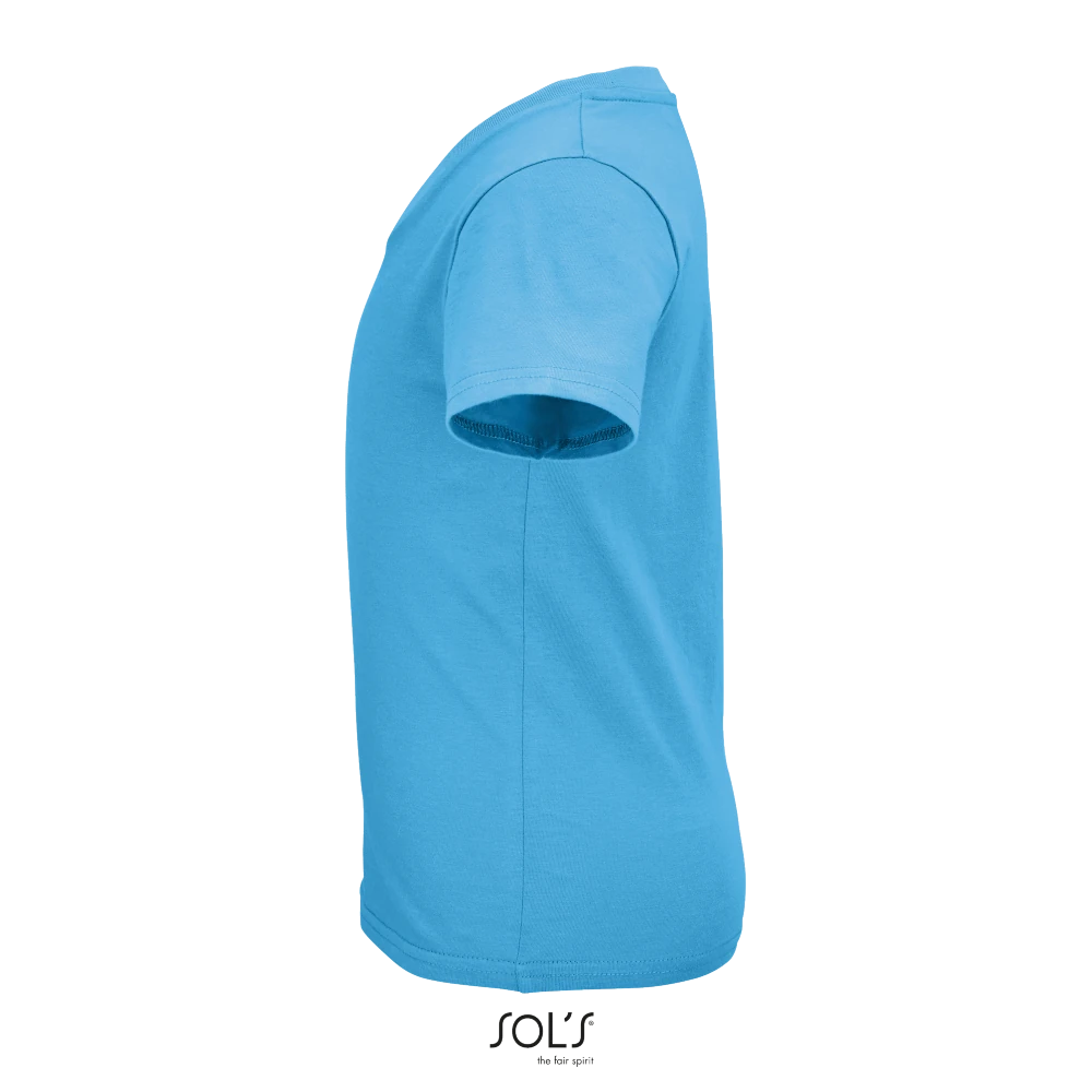 Κοντά μανίκια - Πλαϊνές ραφές (2-8 ετών), ή Χωρίς πλαϊνές ραφές (από 10 ετών και άνω) - Στρογγυλή λαιμόκοψη - Φακαρόλα στο λαιμό - Στενή γραμμή - Πλαϊνές ραφές - Φυσική επεξεργασία για περισσότερη απαλότητα και λεία υφή - Λαιμόκοψη με ριπ - "Wear & Care" SOLO GROUP program