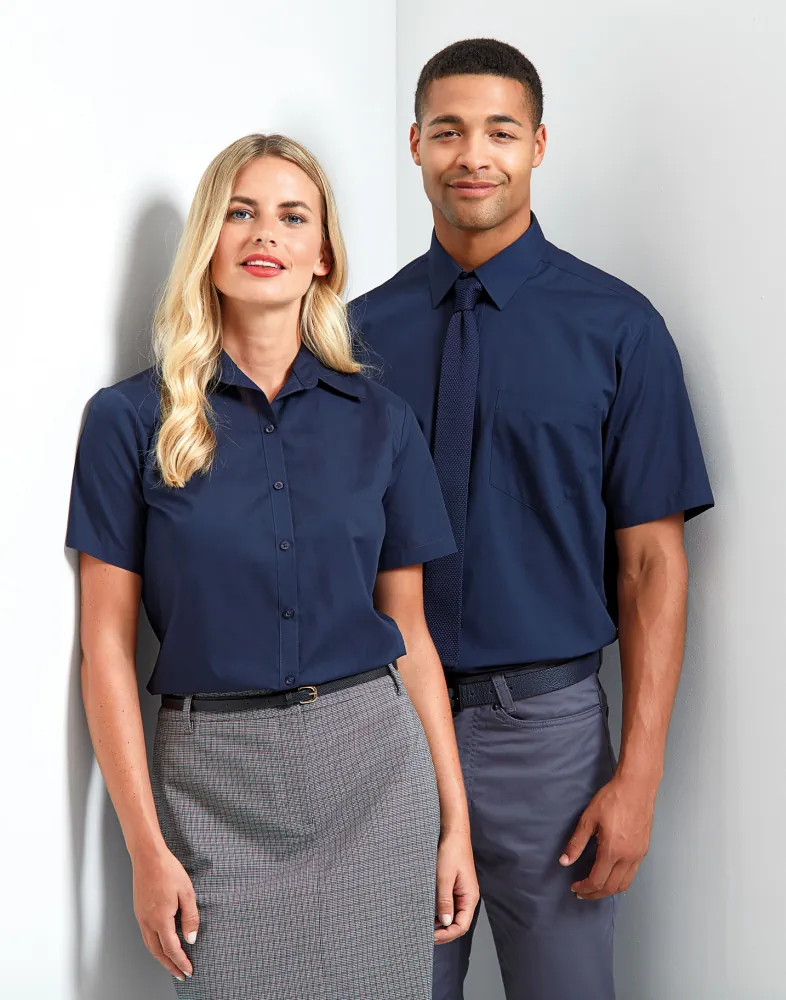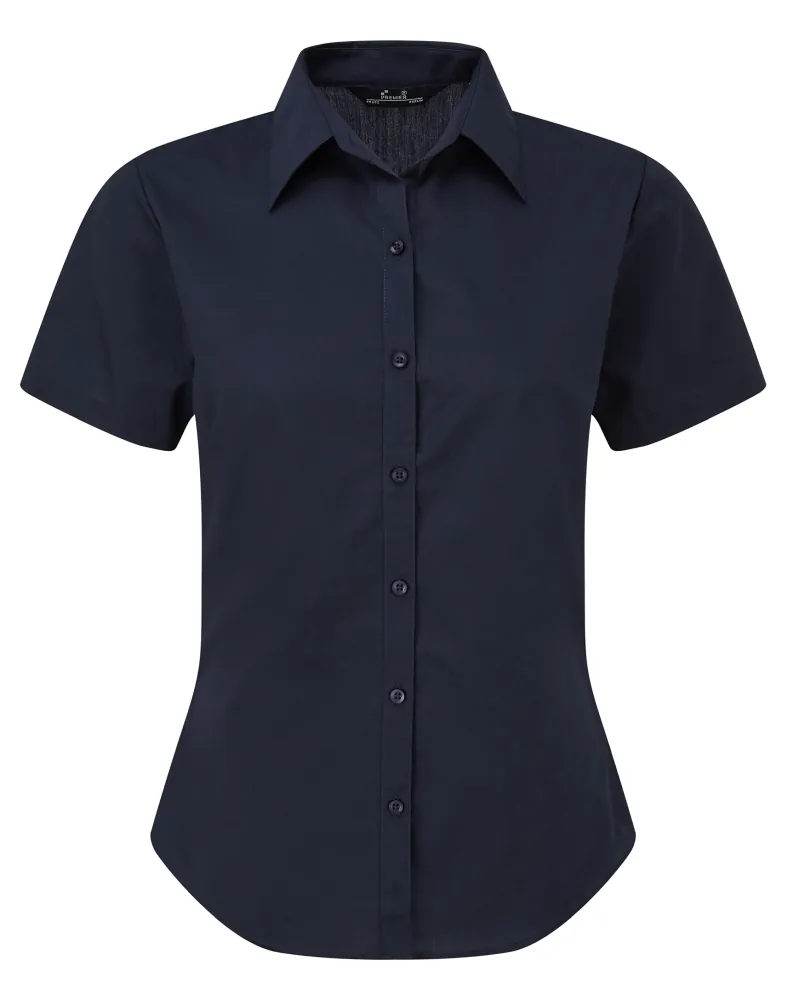 Κοντά μανίκια - Μαλακό κολάρο - Πατιλέτα με 6 κουμπιά στον ίδιο τόνο - Ρυθμιζόμενες μανσέτες με 2 κουμπιά - Πένσες στο στήθος και την πλάτη - Στενή γραμμή