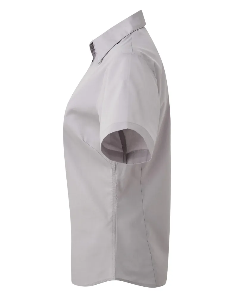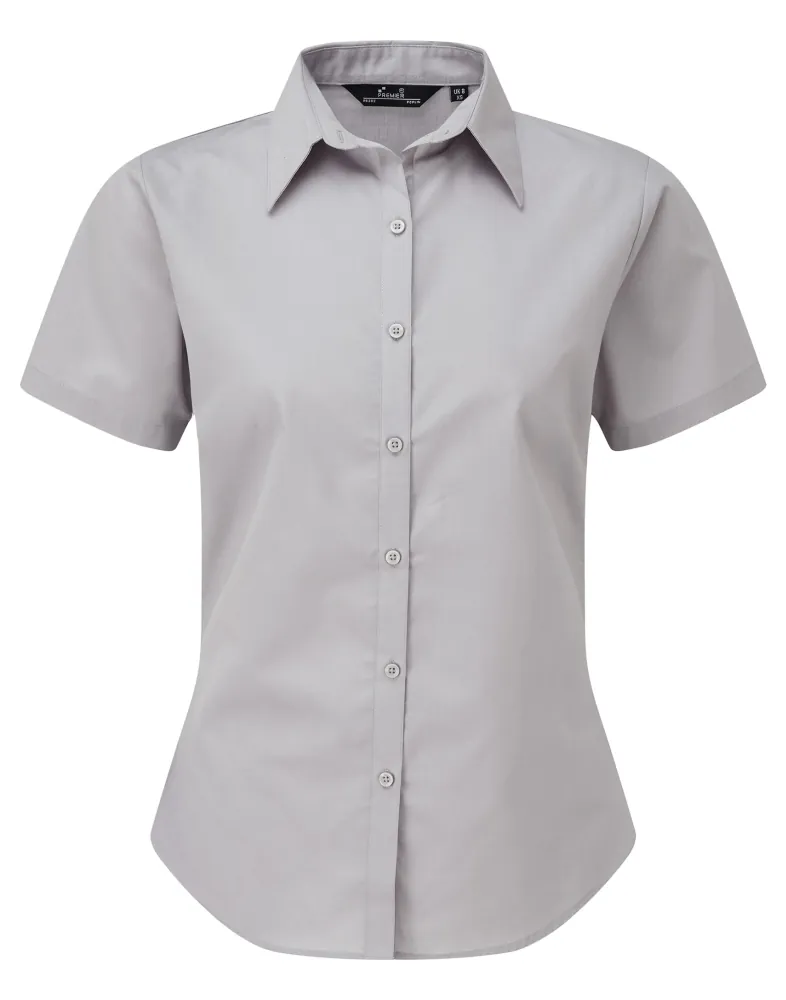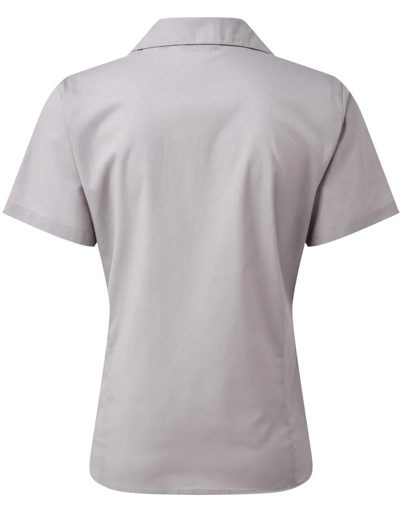 Κοντά μανίκια - Μαλακό κολάρο - Πατιλέτα με 6 κουμπιά στον ίδιο τόνο - Ρυθμιζόμενες μανσέτες με 2 κουμπιά - Πένσες στο στήθος και την πλάτη - Στενή γραμμή