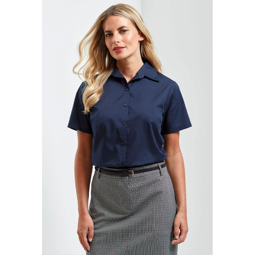 Κοντά μανίκια - Μαλακό κολάρο - Πατιλέτα με 6 κουμπιά στον ίδιο τόνο - Ρυθμιζόμενες μανσέτες με 2 κουμπιά - Πένσες στο στήθος και την πλάτη - Στενή γραμμή