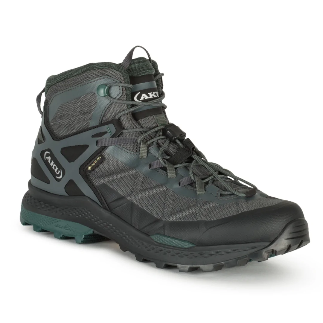Αδιάβροχο και πολύ άνετο ανδρικό μποτάκι πεζοπορίας, αξιόπιστο ακόμα και στα πιο δύσκολα μονοπάτια. Το Rocket Mid DFS GTX υιοθετεί την πρωτοποριακή τεχνολογία Vibram που βελτιώνει την πρόσφυση και το κράτημα κατά 25% χάρη στην ειδική σχεδίαση. Το επάνω μέρος είναι κατασκευασμένο από ύφασμα μικροϊνών και διαθέτει 3D print προστασία. Διαθέτει μεμβράνη Gore-Tex. Η αποκλειστική τεχνολογία AKU Dual Fit System (DFS) με τα 2 διαφορετικά συστήματα κορδονιών, εξασφαλίζει την καλύτερη δυνατή εφαρμογή του παπουτσιού.